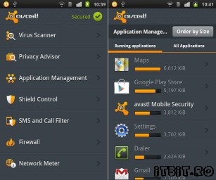 avast! Free Mobile Security este o aplicaţie gratuită pentru sistemul de operare Android care scanează toate aplicaţiile instalate pe telefon împotriva viruşilor, oferă posibilitatea de a bloca apeluri şi SMS-uri primite de la anumite numere de telefon, în plus oferă protecţie firewall pentru a putea opri conexiunea la internet a aplicaţiilor şi un manager de aplicaţii prin intermediul căruia vedeti fiecare aplicaţie câte resurse consumă.