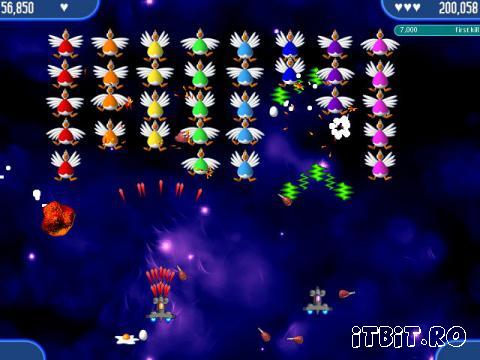 Chicken Invaders este un joc cu gaini in care actiunea se realizeaza in spatiul cosmic si este recomandat copiilor intrucat este un joc non violent si poate spori viteza de reactie.