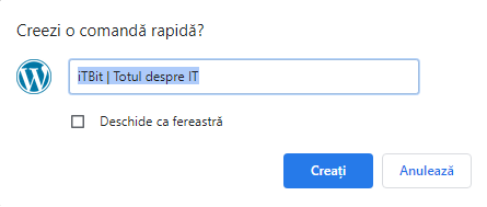 Apasam pe optiunea ” Creeaza o comanda rapida ” si vom vedea un mesaj care ne intreaba daca dorim sa facem o comanda rapida pe ecran la website-ul respectiv dupa care apasam pe butonul ” Creati “.