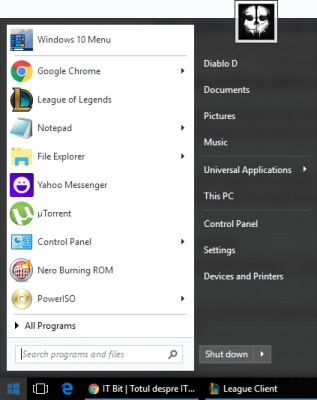 Cum modificam meniul de Start din Windows 10 sa arate ca in Windows 7