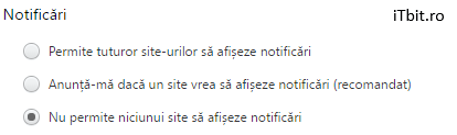 O data ajunsi acolo cautam setarile notificarilor si bifam ” Nu permite niciunui site sa afiseze notificari ”