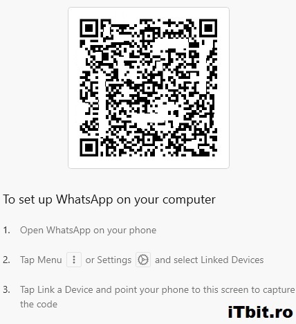 Parcurgând aceşti paşi ajungem la faza finală când trebuie să scanăm codul QR după care vom fi conectaţi şi pe PC sau laptop pe WhatsApp.