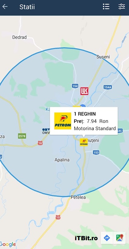 După ce am selectat ” Carburanti auto ” ne va întreba la ce tip de combustibil dorim să aflăm preţul, în cazul acesta eu voi selecta ” Motorină standard “, după care voi lăsa locaţia pe ” Poziţia curentă “, măresc raza de km la 5 şi apăs pe butonul de jos ” Filtrează “. Acuma avem harta cu locaţiile în faţa noastră şi apăsăm pe staţiile de combustibil de la care dorim să aflăm preţul.