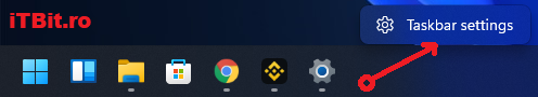 Să ajungem în setările bării de activitate ( Taskbar ) trebuie doar să apăsăm click dreapta pe bara aflată în partea de jos a ecranului şi să apăsăm un simplu click pe “ Taskbar Settings “.