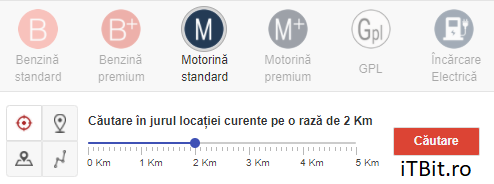 După ce am selectat că dorim să aflăm prețul carburanților auto trebuie să apăsăm un simplu click pe tipul de combustibil care ne interesează și raza asupra căreia dorim să aflăm prețurile.
